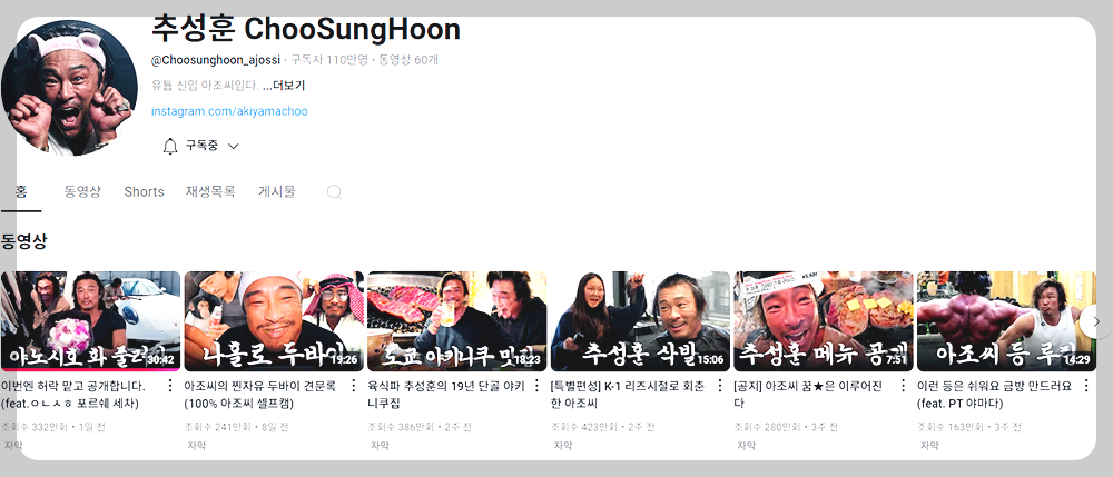 ✅ 추성훈 유튜브 주요 콘텐츠